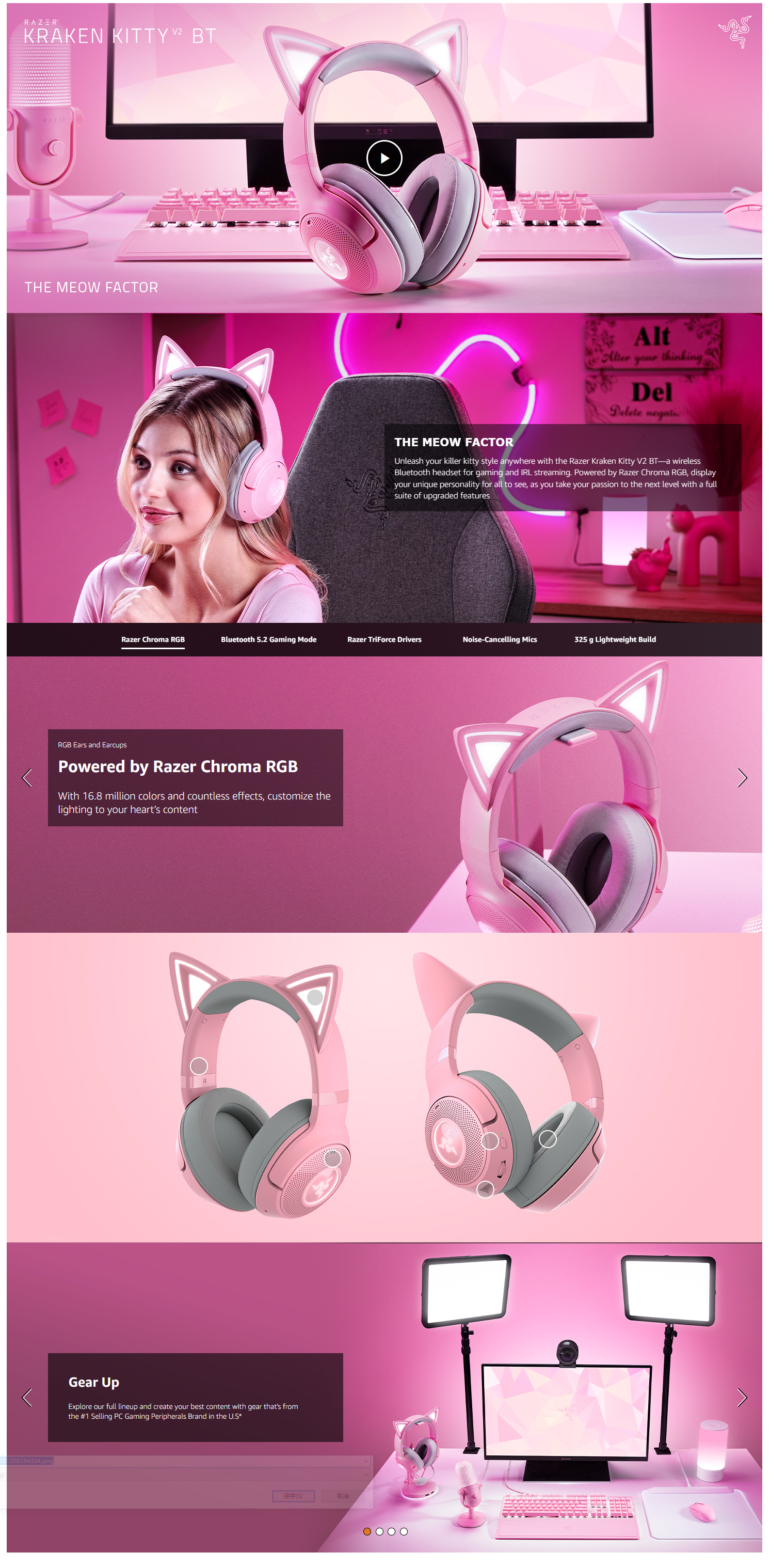 Razer Kraken Kitty V2 BT Wireless RGB Headset: Chroma RGB Kitty Ears & Earcups - Bluetooth 5.2-40 mm Drivers - Noise-Cancelling Mics - Lightweight